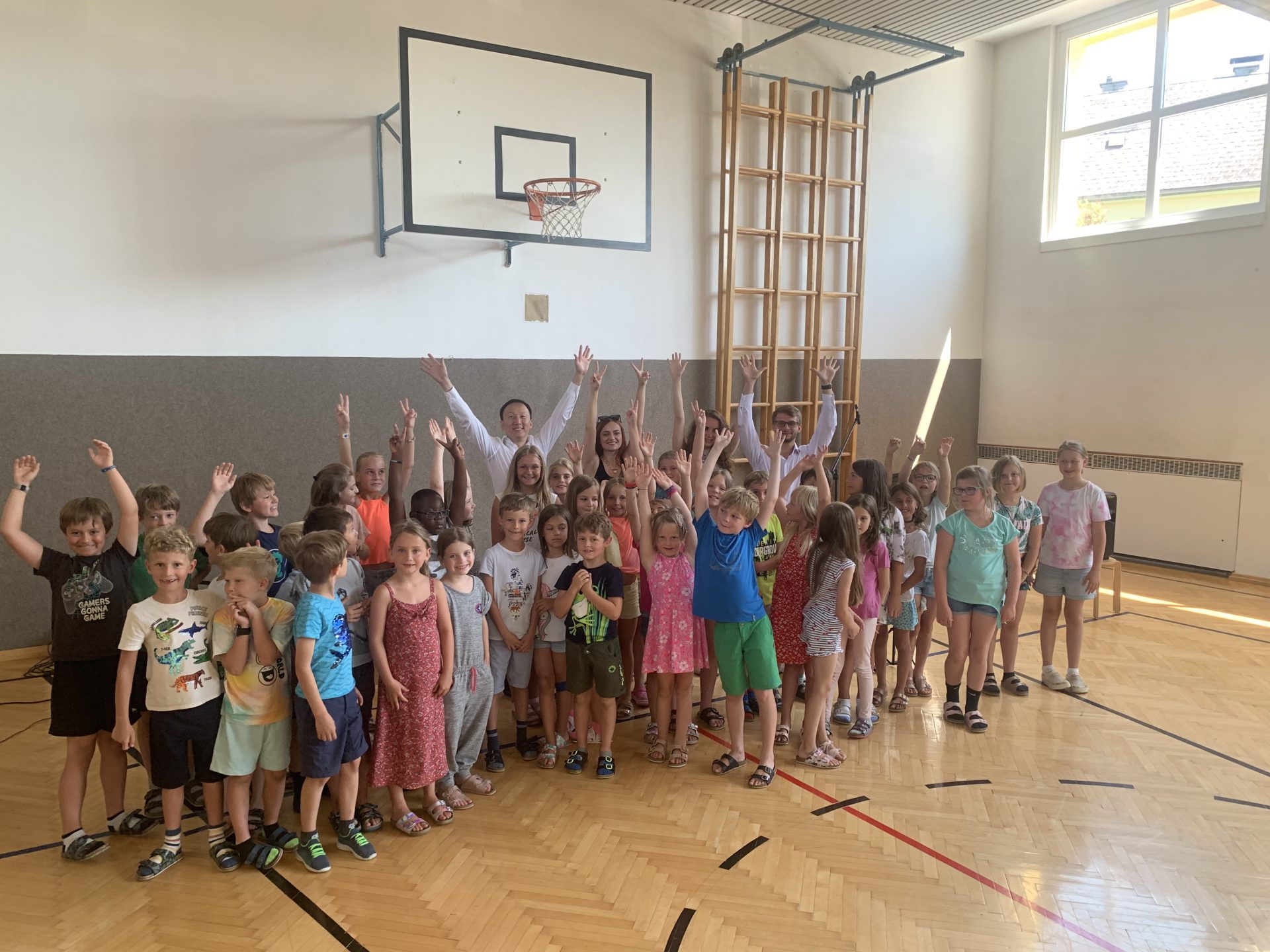 Als Zeichen für ein friedliches Miteinander gaben MusikerInnen aus der Ukraine ein Konzert in der Volksschule Krumpendorf. Auf Initiative von Christian Salmhofer / Klimabündnis spielten und sangen vier ProfimusikerInnen für die Kinder: Ekaterina Slawinski (Gesang), Oleksandr Kornieiev (Querflöte), Bulat Budaev (Gitarre), Galina Pashinska (Gesang). Die großen und kleinen ZuhörerInnen wurden mit einem sehr reichhaltigen Musikangebot bespielt – von Bach bis Adele, von Mozart bis Lady Gaga. Als Intro war das Ave Maria von Johann Sebastian Bach mit Gitarre und Querflöte zu hören. Die Kinder waren voller Staunen bei der Sache, die MusikerInnen freuten sich über ihren Auftritt vor dem jungen Publikum.