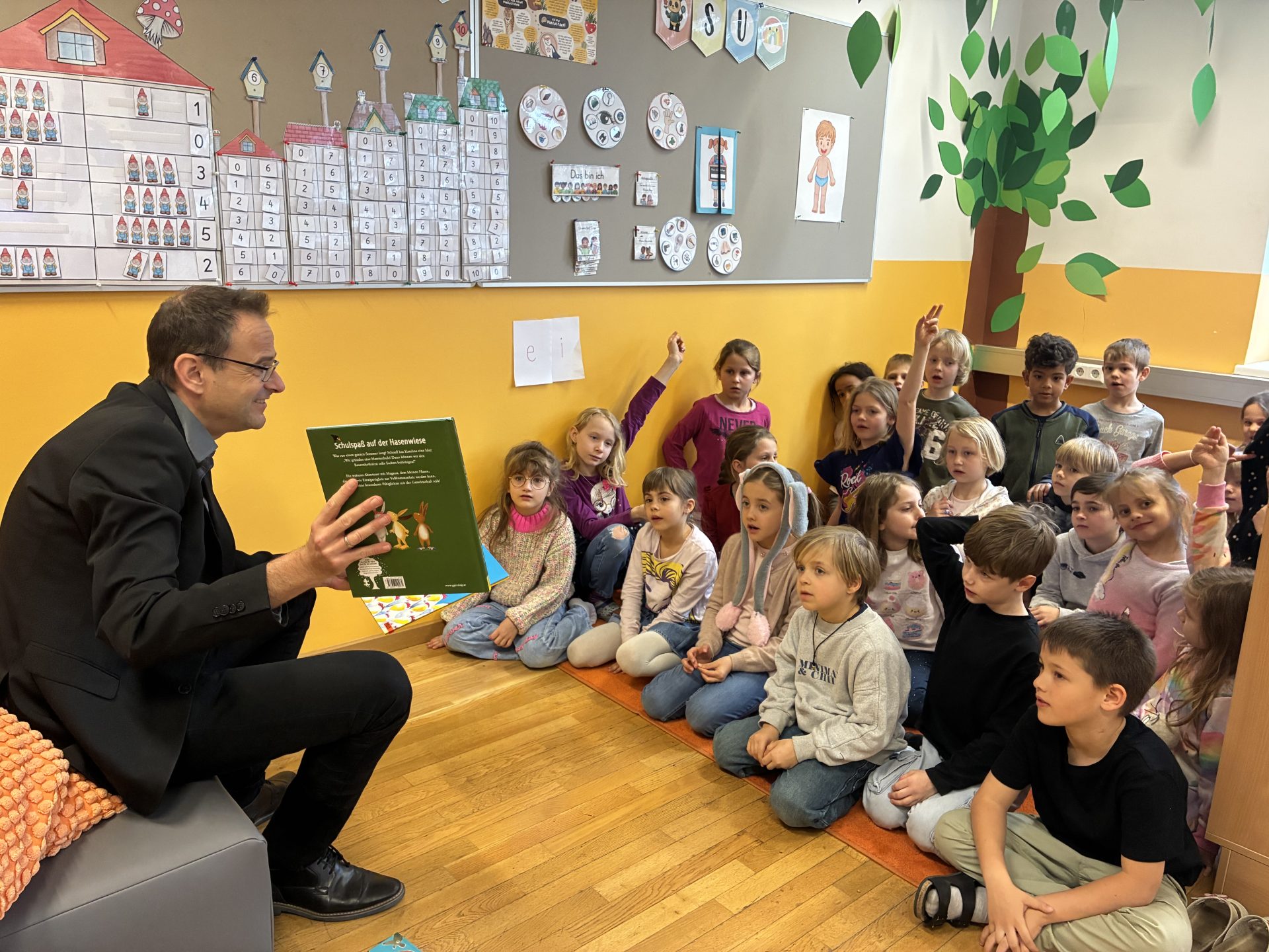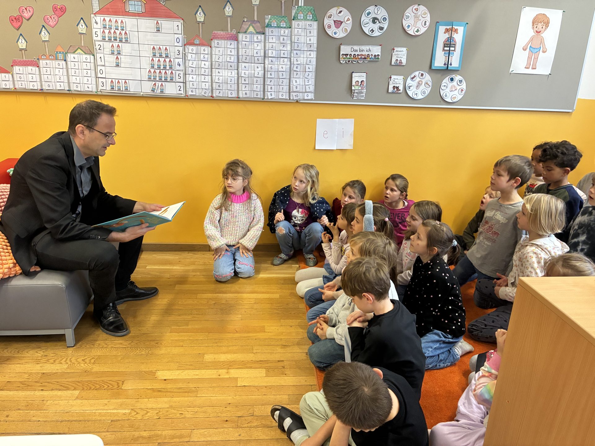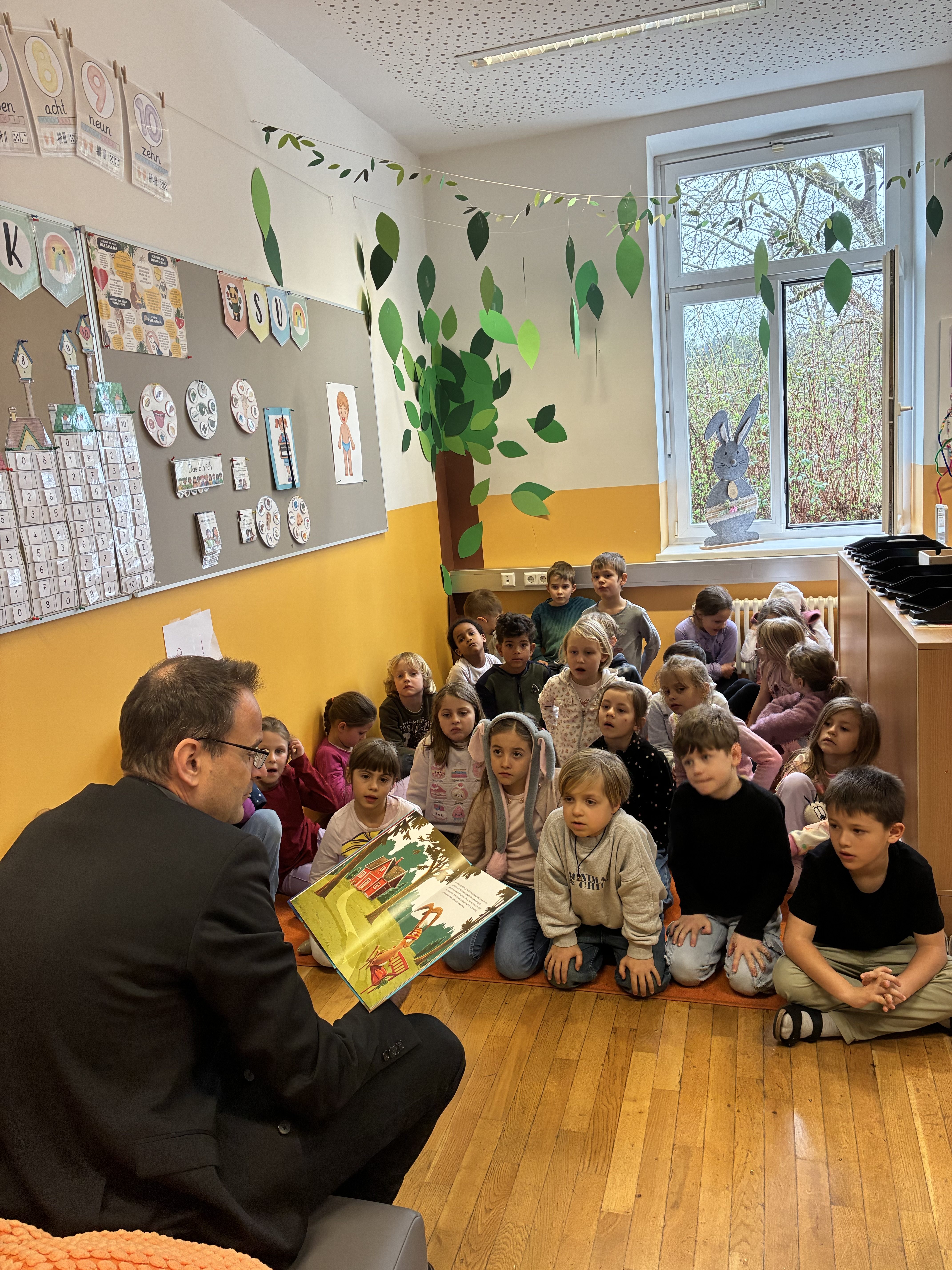 Anlässlich des Österreichischen Vorlesetags durften wir Herrn Buchmayr (SQM) an unserer Schule begrüßen. Er nahm sich Zeit, um den Kindern der 1. Klassen eine spannende Geschichte vorzulesen.